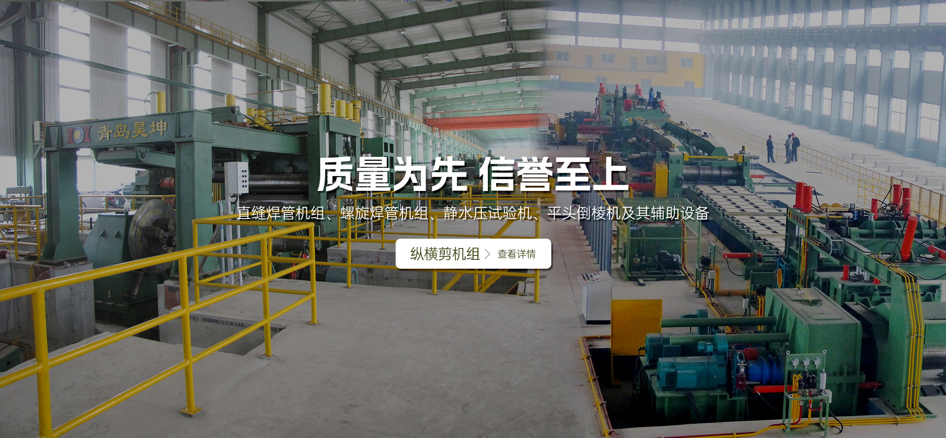 公司主要產(chǎn)品有:直縫焊管機(jī)組、螺旋焊管機(jī)組、平頭倒棱機(jī)、水壓試驗(yàn)機(jī)、縱剪生產(chǎn)線(xiàn)、銑邊機(jī)等。